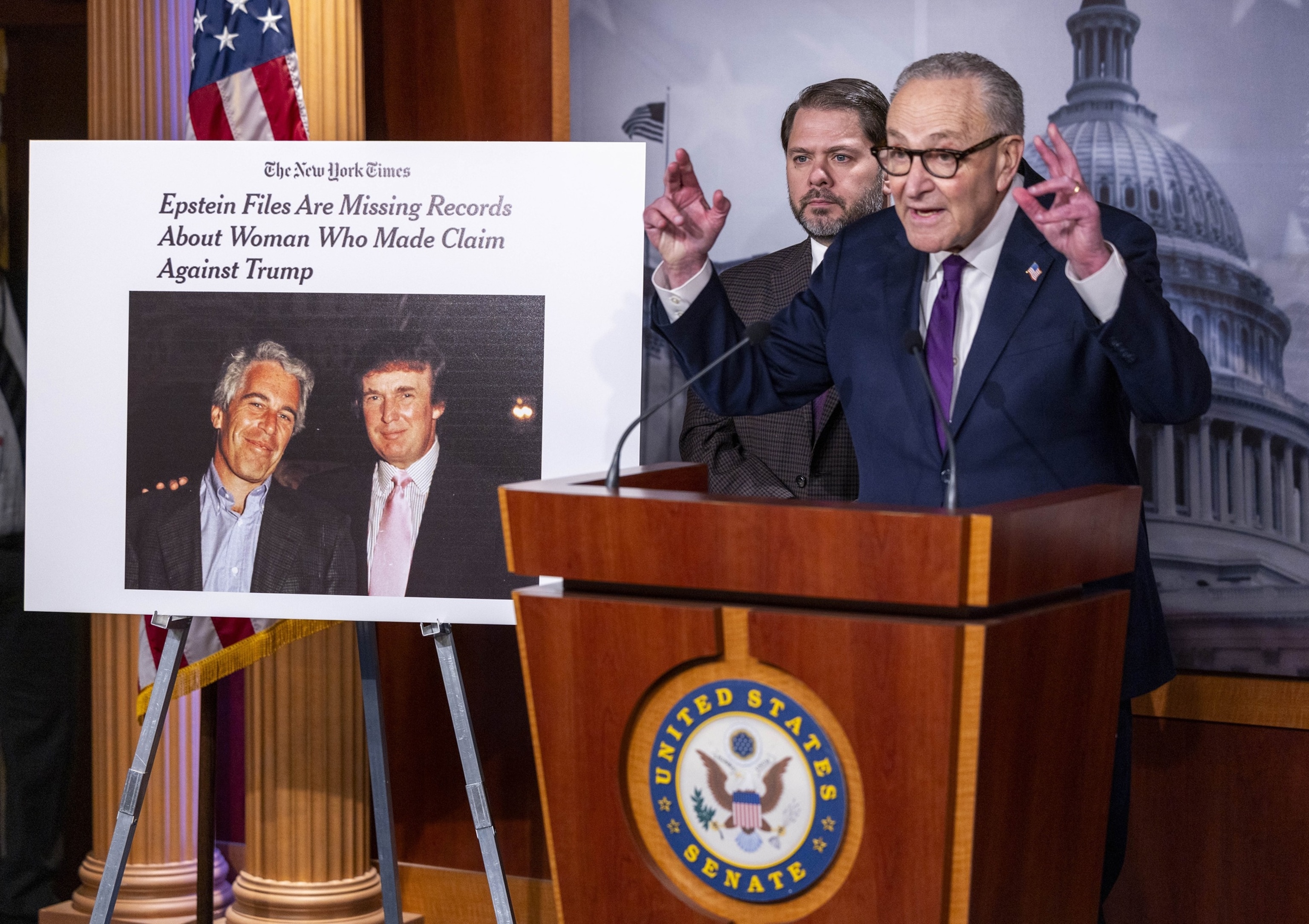Sen. Ron Wyden, D-Ore., left, pictured next to protestors wearing inflatable frog costumes standing in a congressional office, right. (Nathan Posner/Anadolu via Getty Images; Bill Clark/CQ-Roll Call, Inc via Getty Images)