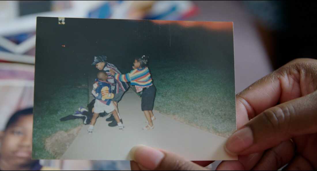 Reneasha Jacobs, James’ older sister, holds an old photograph of herself and her two brothers from when they were kids. James shot and killed someone on April 16, 2004. Three days later, their older brother was murdered.